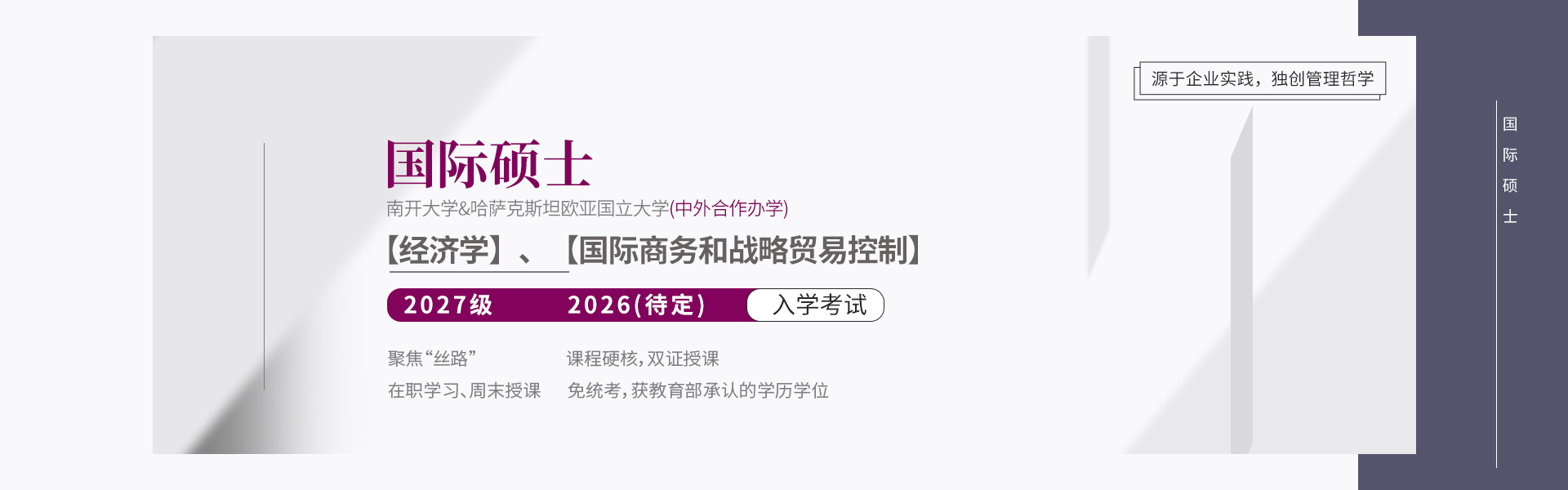 南开大学与哈萨克斯坦欧亚国立大学(QS317)经批准开设中外合作办学硕士项目,2026级招生即将截止。项目设经济学、国际商务专业,免统考,学制2年,周末授课,在职可读。毕业所获外方硕士学位可获留学服务中心认证。